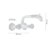 Bateria ścienna 0221 to satynowany model 1/2”. Wyróżnia się wylewką zakończoną głową smoka, która dodaje jej unikalnego stylu. Dodatkowo dekoracyjne kurki oraz rozety o średnicy 7,5 cm tworzą spójną i elegancką całość. Dzięki temu bateria staje się nie tylko praktyczna, lecz także ozdobna.